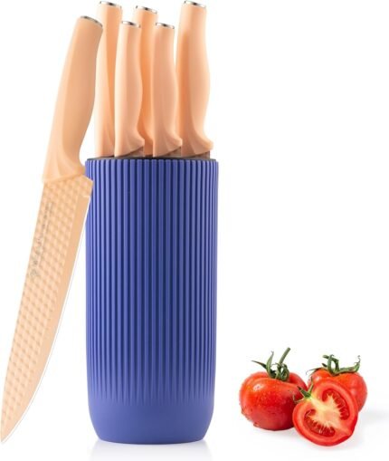 Price: (as of – Details) Mealia 6-Piece Kitchen Knife Set – Pink & Black Transform your culinary experience with the