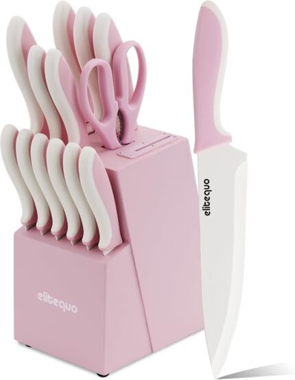Elitequo 14 Piece Kitchen Knife Set with Built-in Sharpener, German Stainless Steel & Ceramic-Coated Blades, Dishwasher Safe