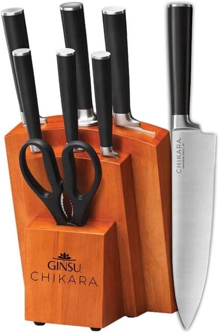 Farberware Self-Sharpening 13-Piece Knife Block Set with EdgeKeeper Technology, High Carbon-Stainless Steel Kitchen Knives, Razor-Sharp Knife Set with Wood Block, Black