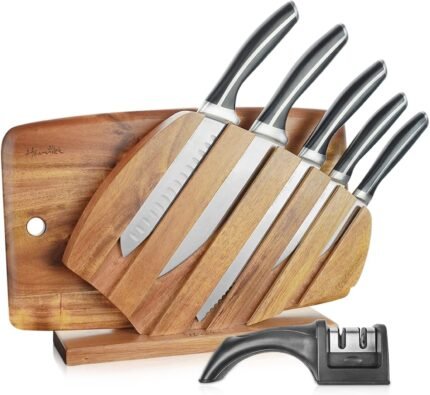 Harriet Knife Set – 7 Pieces Kitchen Knife Set with Cutting Board & Sharpener, High-Carbon Stainless Steel Knife Block Set, Chef Knife Set with Acacia Wood Knife Block