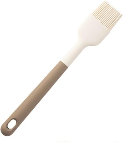 BRIIEC 1-piece Basting Brush Silicone Cooking Kitchen Utensils Set White and Coffee Brown Handle Kitchen Gadgets Heat Resistant Kitchen Tolls for Nonstick Cookware