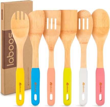 Price: (as of – Details) Colorful 6-Piece Bamboo Cooking Utensil Set Upgrade your kitchen with this vibrant 6-piece bamboo cooking