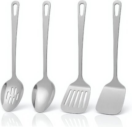 Cooking Utensils Set 4pcs – Stainless Steel Kitchen Utensils, Heavy Duty Metal Utensils Set with Stainless Steel Spatula Set Wok Spatula, Serving Spoons, Ergonomic Handle and Dishwasher Safe