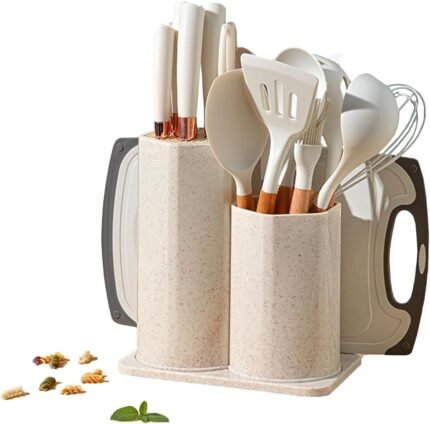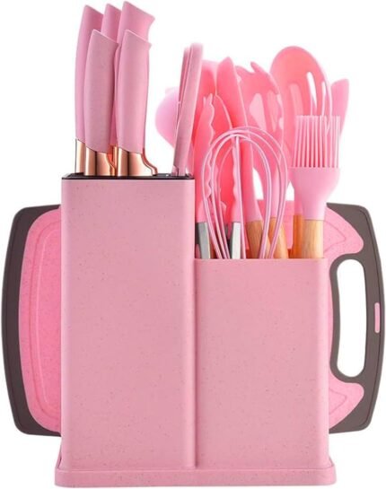 Price: (as of – Details) 19 PCS Silicone Kitchen Utensils Set with Holder and Kitchen Knife Set This 19-in-One Set