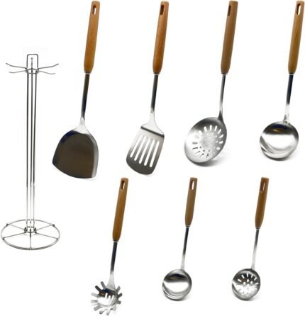 Price: (as of – Details) Hommony Wooden Handle Kitchen Utensil Set Premium stainless steel construction ensures durability and rust resistance,