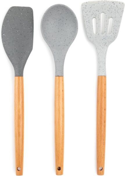 Core Kitchen 3 piece Silicone & Beechwood Utensil Set -Speckle