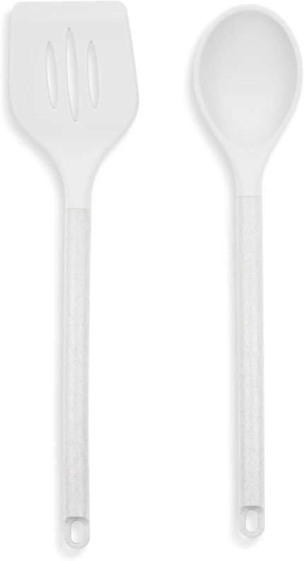 Core Kitchen 2-Piece Wheat Stalk Utensil Set – Slotted Turner & Spoon – Eco-Friendly Silicone & Wheat Fiber – Hail