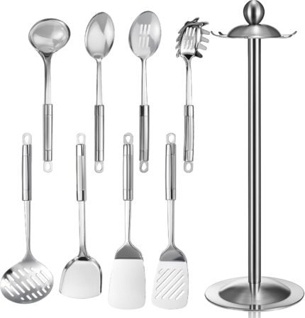 Lazycorner 304 Stainless Steel Kitchen Utensils Set 9-Piece Polished Mirror Finish Cooking Spoons, Slotted Spoon, Turner, Spatula, Pasta Spoon– Dishwasher Safe, Rust-Resistant