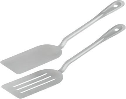 OCS Parts Pro Series Stainless Steel Spatula Cooking Utensil Set | Set of 2 14.5″ Flexible Solid and Slotted Dishwasher Safe Food Turner Spatulas for Home and Commercial Kitchens
