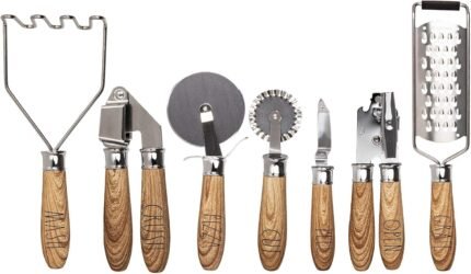 Rae Dunn Everyday Collection 7 Piece Wooden and Stainless Steel Kitchen Gadget Set- Kitchen Tools with Wooden Handles