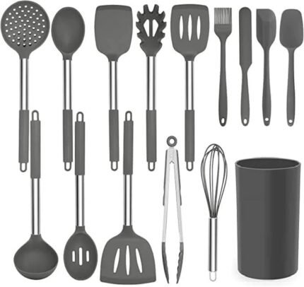 Seido 15-Piece Silicone Kitchen Utensil Set with Stainless Steel Handles, Heat-Resistant Cooking Tools