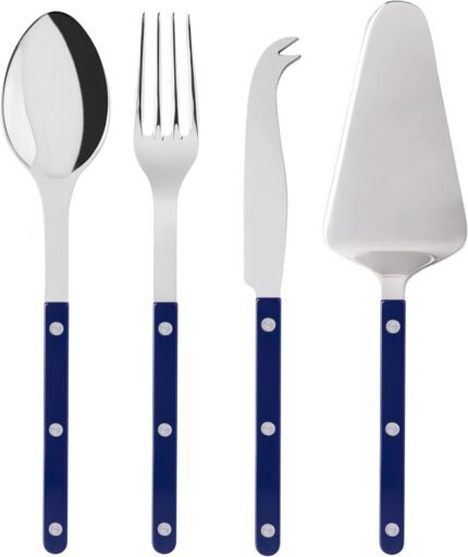 SABRE PARIS – 4-Piece Serving Set – Bistrot Collection – 2 Serving Flatware, Serrated Pie Server, Large Cheese Knife – Stainless Steel & Nylon – Dishwasher Safe – Navy Blue – Brilliant Finish