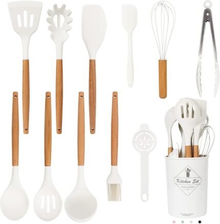 Price: (as of – Details) Kitchen Utensil Set This set of 12 essential kitchen tools includes a pasta server, basting
