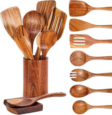 Price: (as of – Details) 8-Piece Wooden Kitchen Utensil Set Elevate your cooking experience with this versatile 8-piece wooden kitchen