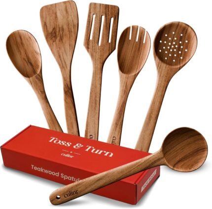 Wooden Spatula Set 6 piece – Handmade, Heat Resistant, Lightweight, Natural Teak Wood Utensil Set for Non Stick Cooking