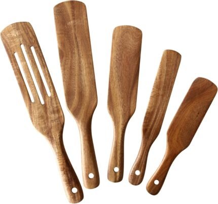 Wooden Utensils Spatulas Set, 10 PCS Natural Acacia Wooden Cooking Utensils Set – Durable Spatulas, Spoons & Ladle for Kitchen
