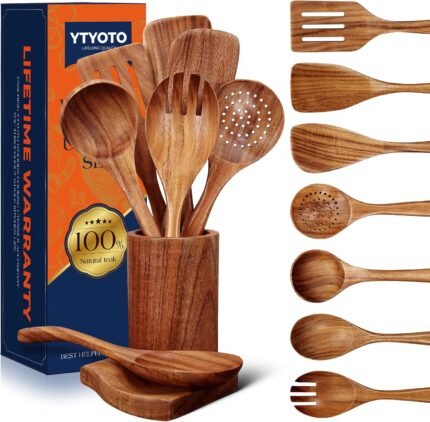 Price: (as of – Details) YTYOTO Wooden Cooking Utensils with Holder Experience the joy of cooking with our premium wooden