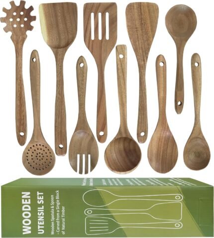 Price: (as of – Details) Introduction to Wooden Utensil Set Eco-Friendly Material: Crafted from high-quality natural acacia wood, this wooden