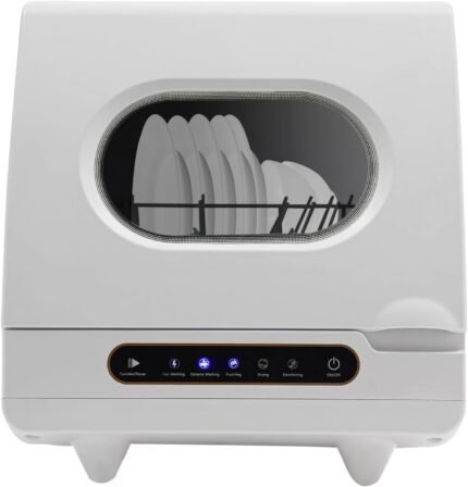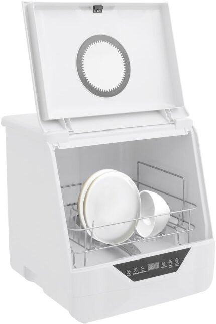 Price: (as of – Details) Compact Countertop Dishwasher This portable countertop dishwasher in sleek white features 5 washing programs for
