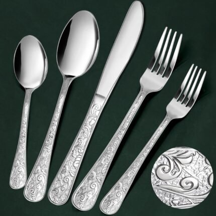 Meythway 40-Piece Vintage Carved Silverware Set for 8, Stainless Steel Flatware Set with Knife/Fork/Spoon, Cutlery Set for Home and Kitchen, Utensil Set with Dishwasher Safe