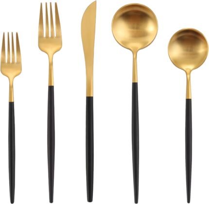 Matte Black Gold Silverware Set, Oliviola 20-Piece Stainless Steel Flatware Cutlery Set Service for 4, Satin Finish Kitchen Utensil Set, Dishwasher Safe