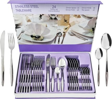Price: (as of – Details) Complete Dining Solution with 24-Piece Hammered Silverware Set This 24-Piece hammered silverware set is perfect