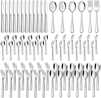 66-Piece Heavy Duty Silverware Set for 12, LIANYU Thick Flatware Set with Serving Utensils, Stainless Steel Cutlery Tableware Include Fork Knife Spoon, Mirror Finished, Dishwasher Safe