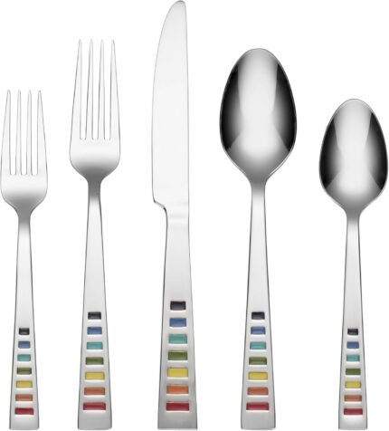 Fiesta – 641020R Fiesta Celebration 20-Piece Flatware Silverware Set, Service for 4, Stainless Steel, Includes Forks/Knife/Spoons