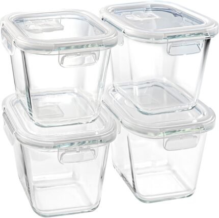 Soup Containers with Lids Glass 32 oz, 4 Cup Borosilicate Glass Food Storage Containers, Microwave & Freezer Safe Jars, Small Square Meal Prep Bowl for Salad, Fruit, Lunch, Ice Cream, Travel, 4 Pack
