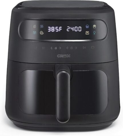 CRUX x Marshmello 8.0 QT Digital Air Fryer with TurboCrisp Technology, Touch Screen Temperature Control, Timer and Auto Shut-off, Fully Programmable, Silicone Liner Included, Black