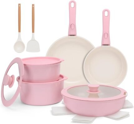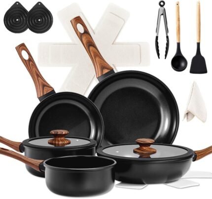 Price: (as of – Details) Introduction to Non-Stick Pots and Pans Set Made from durable food-grade aluminum, this cooking set