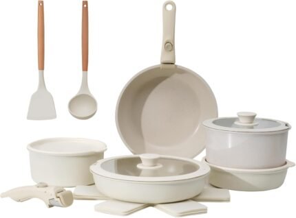 Price: (as of – Details) Introduction to Non-Stick Cookware Set Made from durable food-grade aluminum, this cooking set heats quickly