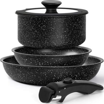 Price: (as of – Details) Nonstick Kitchen Cookware Set with Detachable Handle This nonstick pots and pans set is crafted