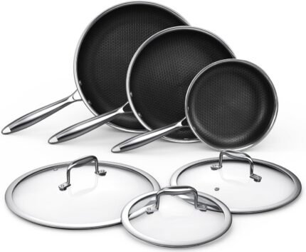 MOMOSTAR Hybrid Nonstick 6-Piece Frying Pan Set, 8, 10 and 12-Inch Cookware Sets with Tempered Glass Lids, Dishwasher & Oven Safe, Induction Ready, Compatible with All Cooktops