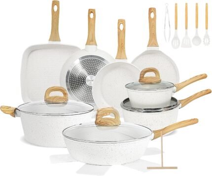 Price: (as of – Details) 25-Piece Nonstick Ceramic Cookware Set (White) This comprehensive cookware set is designed to make cooking