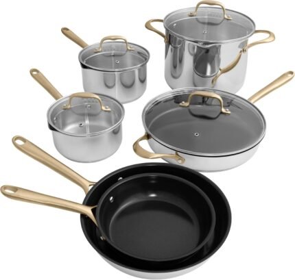 Price: (as of – Details) ZLINE 10-Piece Non-Toxic Stainless Steel with 3-Piece Nonstick Ceramic Cookware Set Luxury isn’t meant to