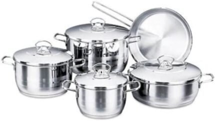 Price: (as of – Details) Stainless Steel Cookware Set This classic mirror polished stainless-steel cookware set is designed to fit