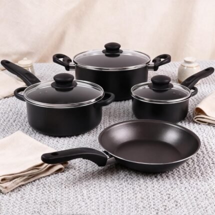 7 Piece Non Stick Aluminium Cookware Set – Black Pots and Pans, Ideal for Home Kitchen Daily Cooking