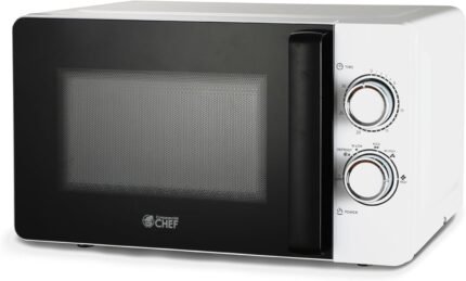 Commercial CHEF Small Microwave 0.7 Cu. Ft. Countertop Microwave with Mechanical Control, White Microwave with 6 Power Levels, Outstanding Portable Microwave with Convenient Pull Handle