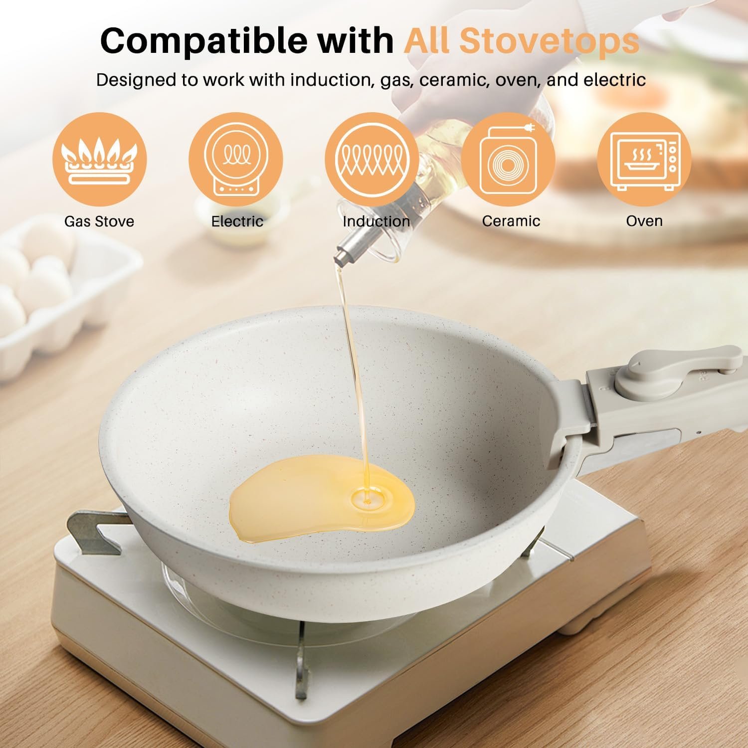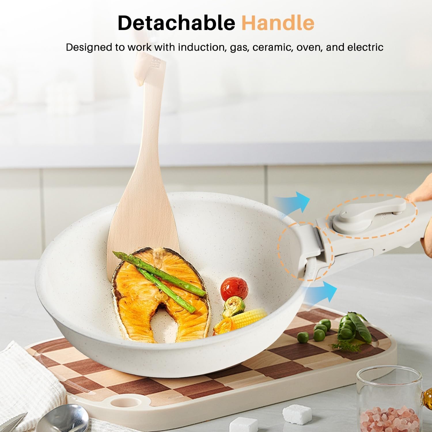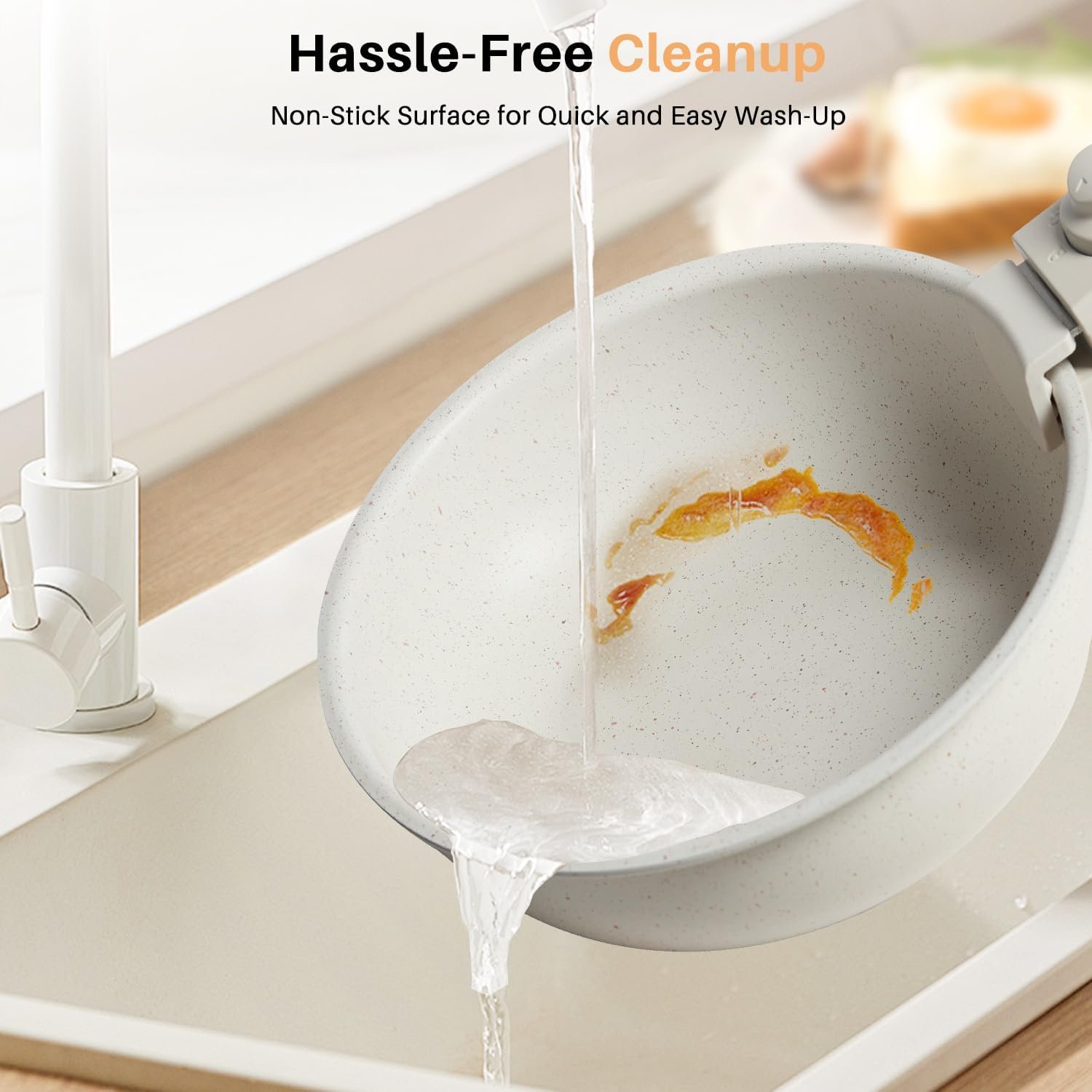 This non-stick pots and pans set is crafted with a premium granite non-stick surface, ensuring superior durability and effortless food release. The coating prevents food from sticking, reducing the need for excess oil and promoting healthier cooking. Enjoy quick and easy cleanup with minimal effort, making this cookware set a must-have for your kitchen.