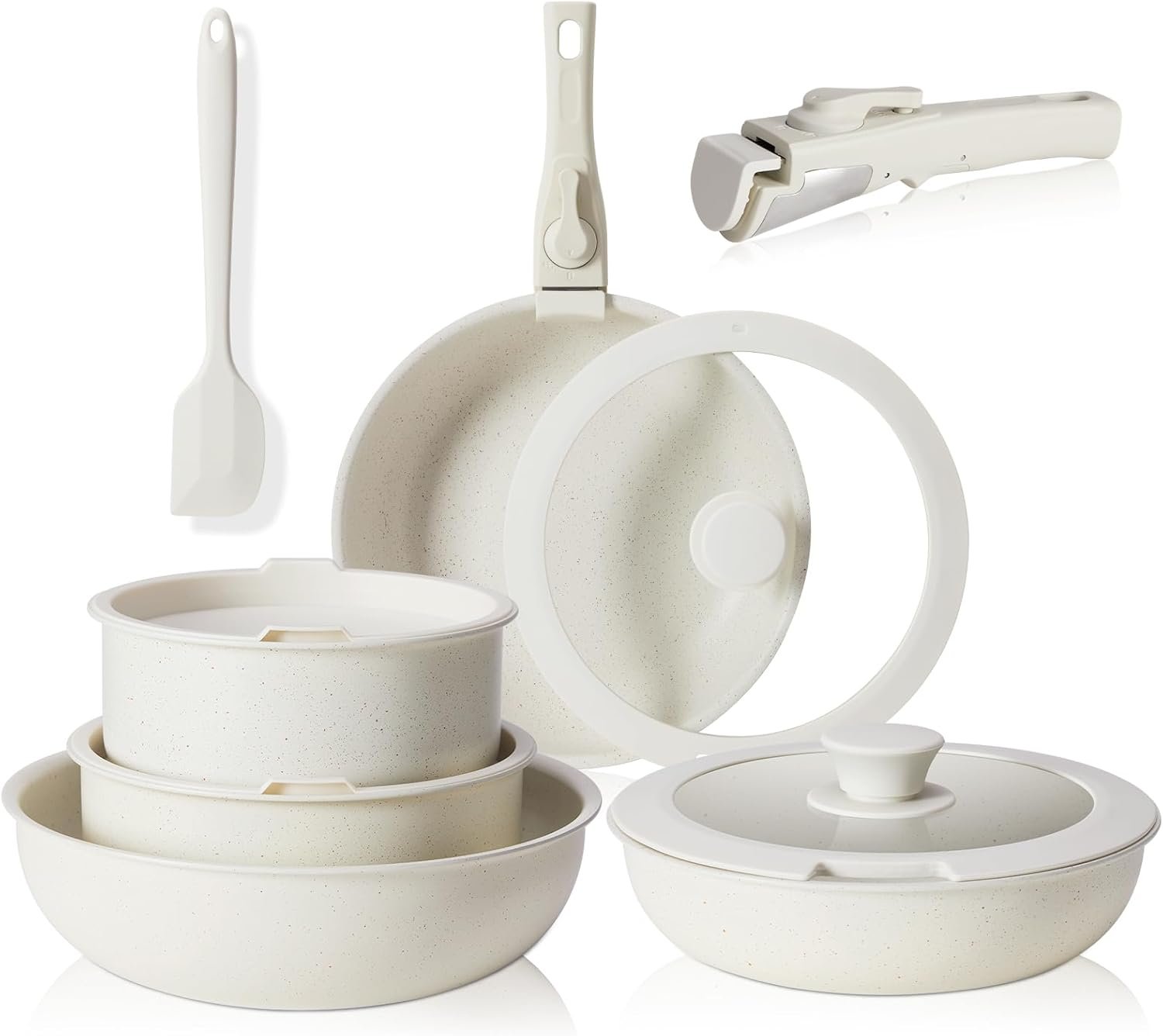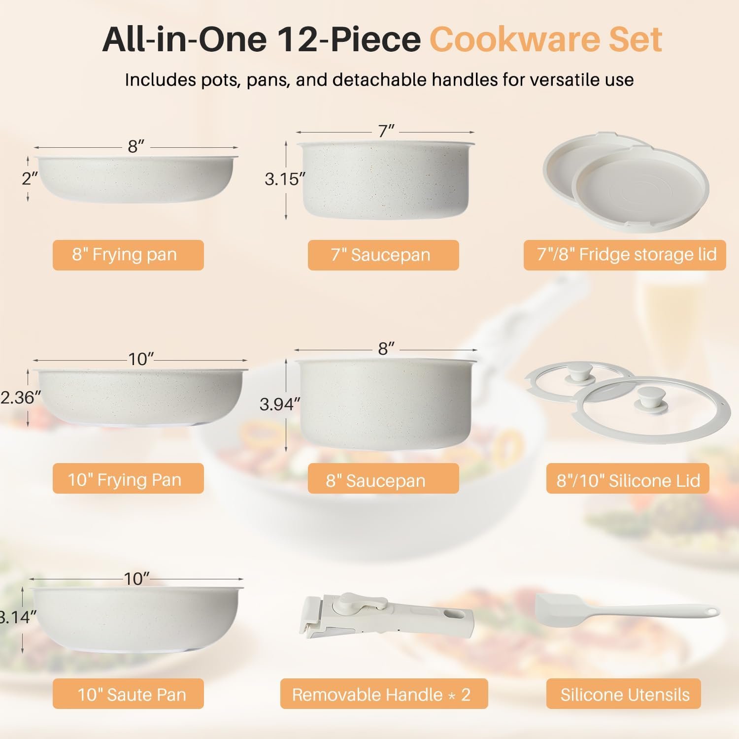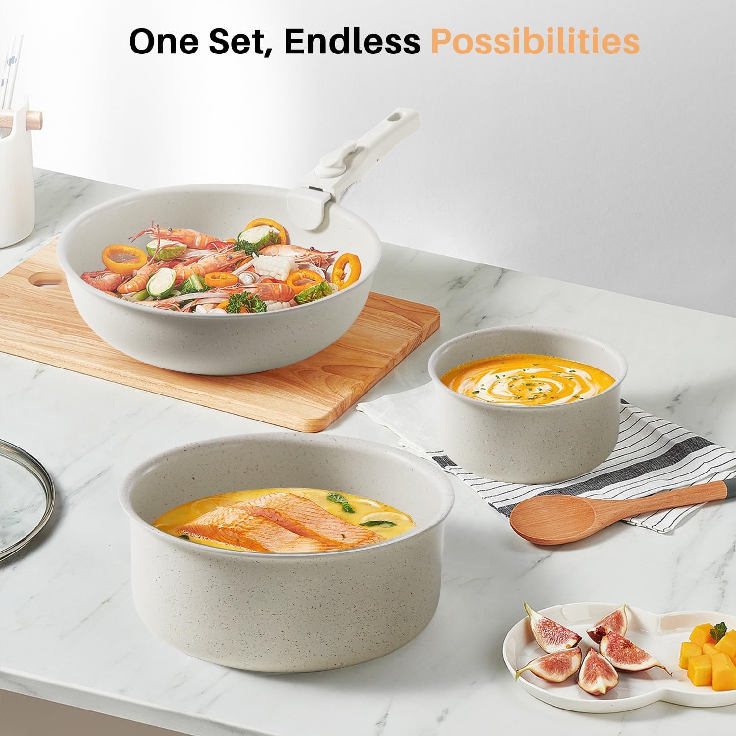This non-stick pots and pans set is crafted with a premium granite non-stick surface, ensuring superior durability and effortless food release. The coating prevents food from sticking, reducing the need for excess oil and promoting healthier cooking. Enjoy quick and easy cleanup with minimal effort, making this cookware set a must-have for your kitchen.