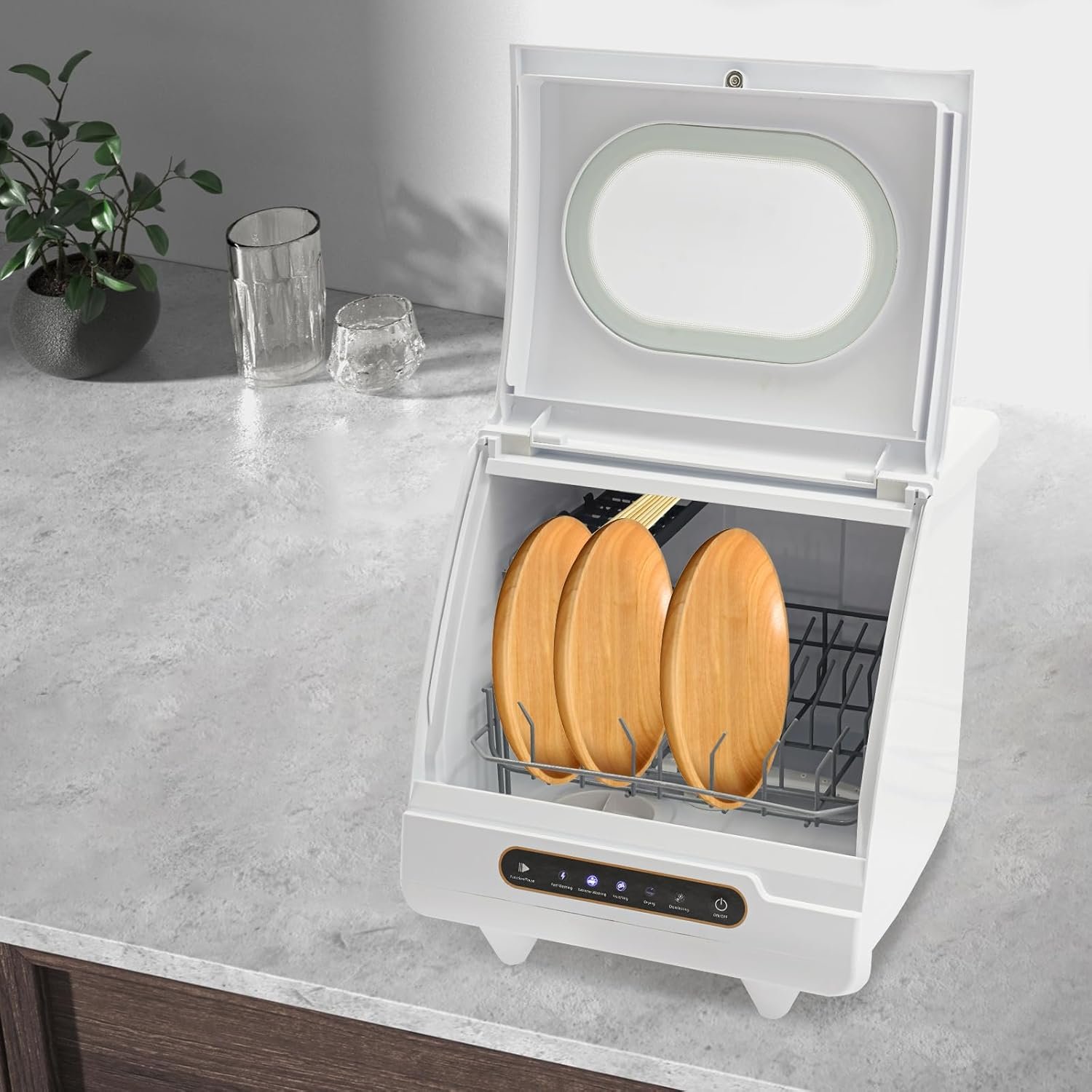 This compact dishwasher is perfect for small-sized houses, apartments, dorms, boats, and campers/RVs. It can clean dishes, knives, forks, spoons, chopsticks, cups, and other tableware, making it an ideal addition to any small living space.
