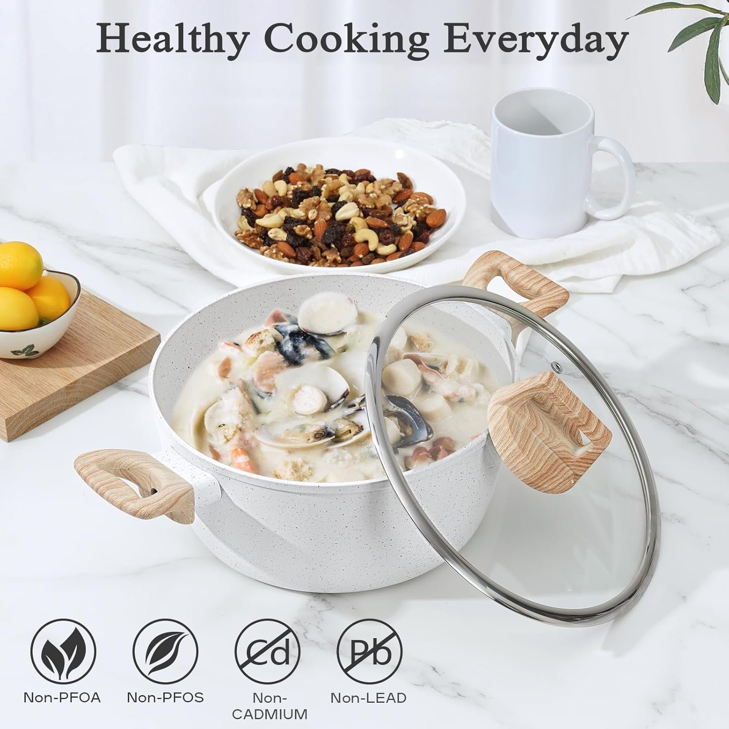 Superior Granite Quality: Feature premium granite coating ensures long-lasting durability and exceptional non-stick properties, making cooking a breeze. Non-toxic and Non PFOS & PFOA, SGS Approved cookware sets allow you to cook healthy and safe.