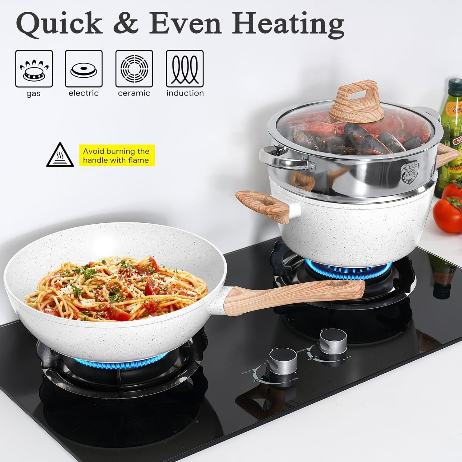 Compatible with All Stovetops: From gas to electric and induction, nonstick induction cookware set are designed to work flawlessly on any cooktop.