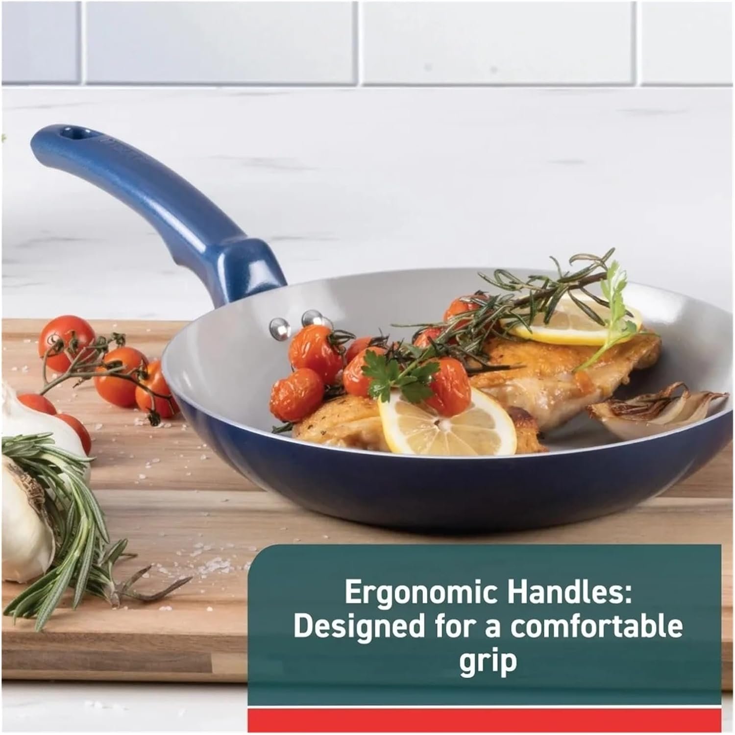 - Comfortable handles and glass lids for better control when cooking