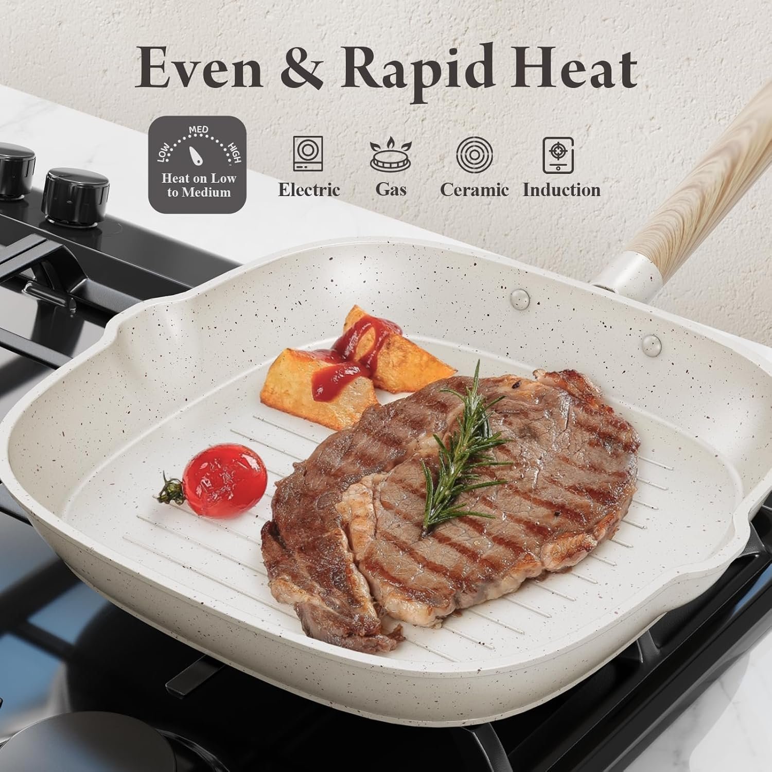 - Easy to Clean: Simply rinse or wipe, and the cookware set will stay spotless.