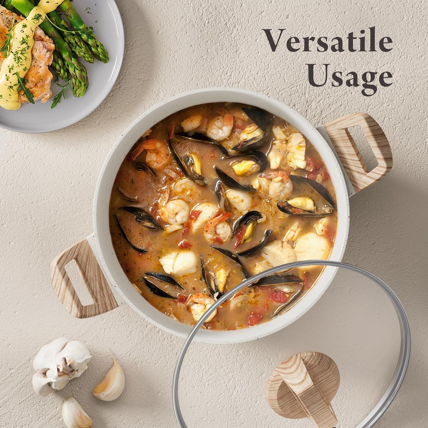 - All Stoves Compatible: Enlarged and thickened bottom for rapid and even heating, compatible with all stovetops, including induction.