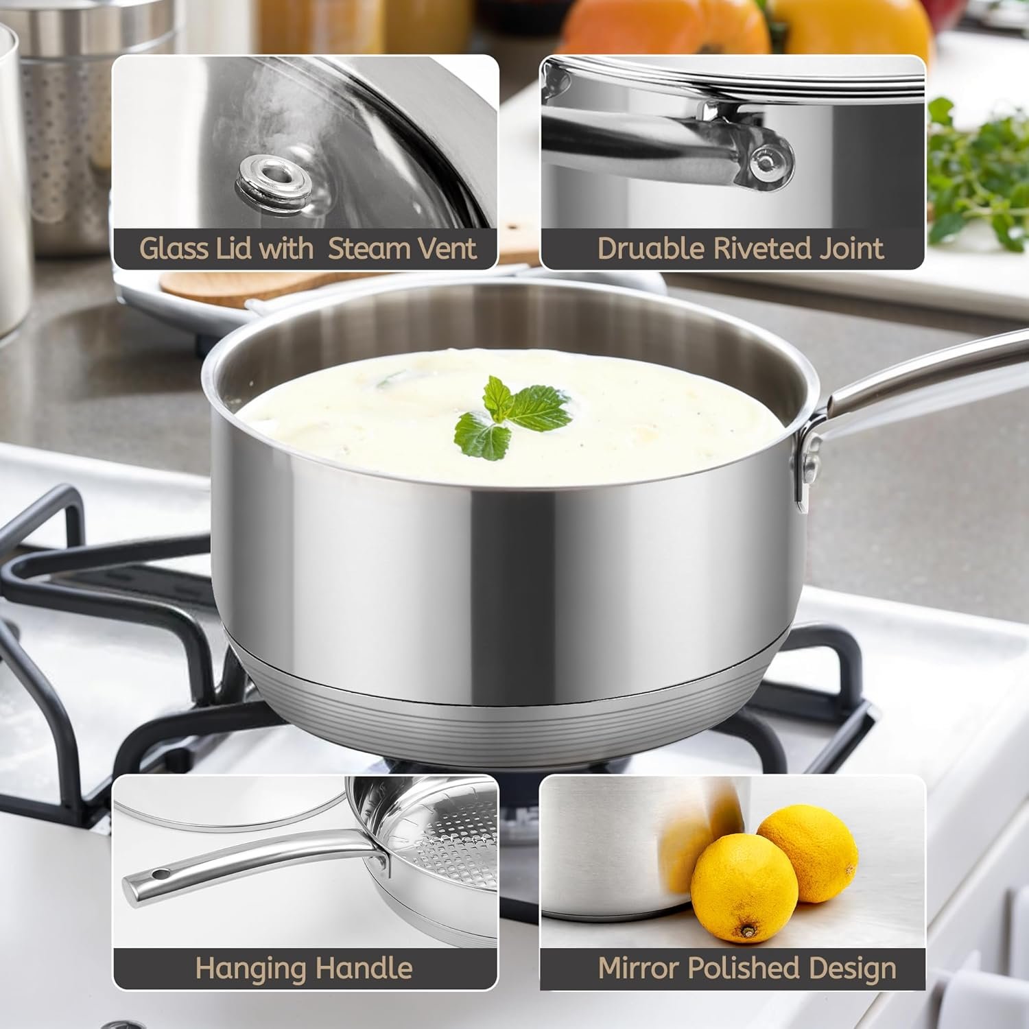 - Compatible with All Stovetops: Outer layer of 430 stainless steel makes it versatile for different cooking surfaces.