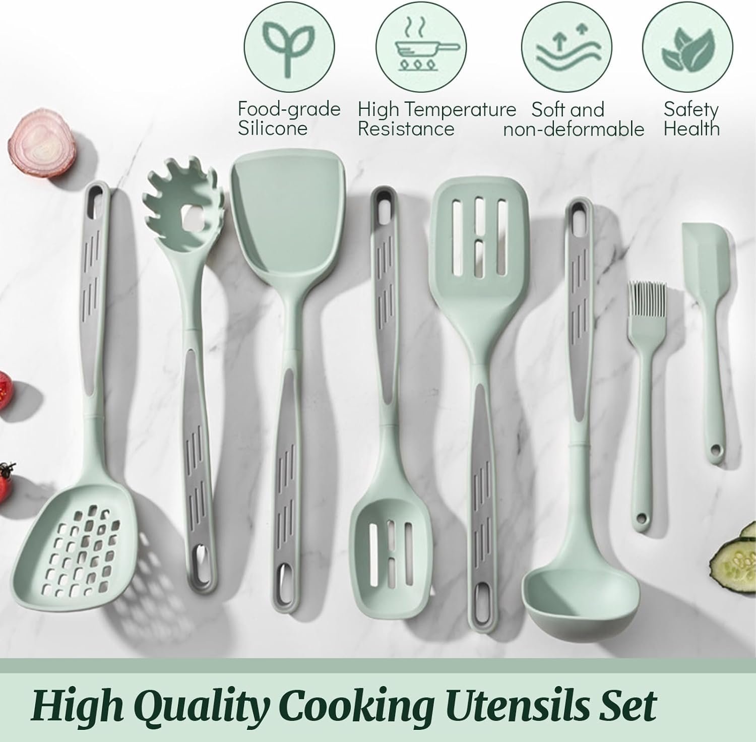 Our cooking utensils set is crafted from food-grade silicone and heat-resistant PP plastic, withstands up to 230°C. The non-slip, insulated handles ensure safe cooking. This complete kitchenware set is odorless, BPA-free, and designed for daily use while protecting your cookware.