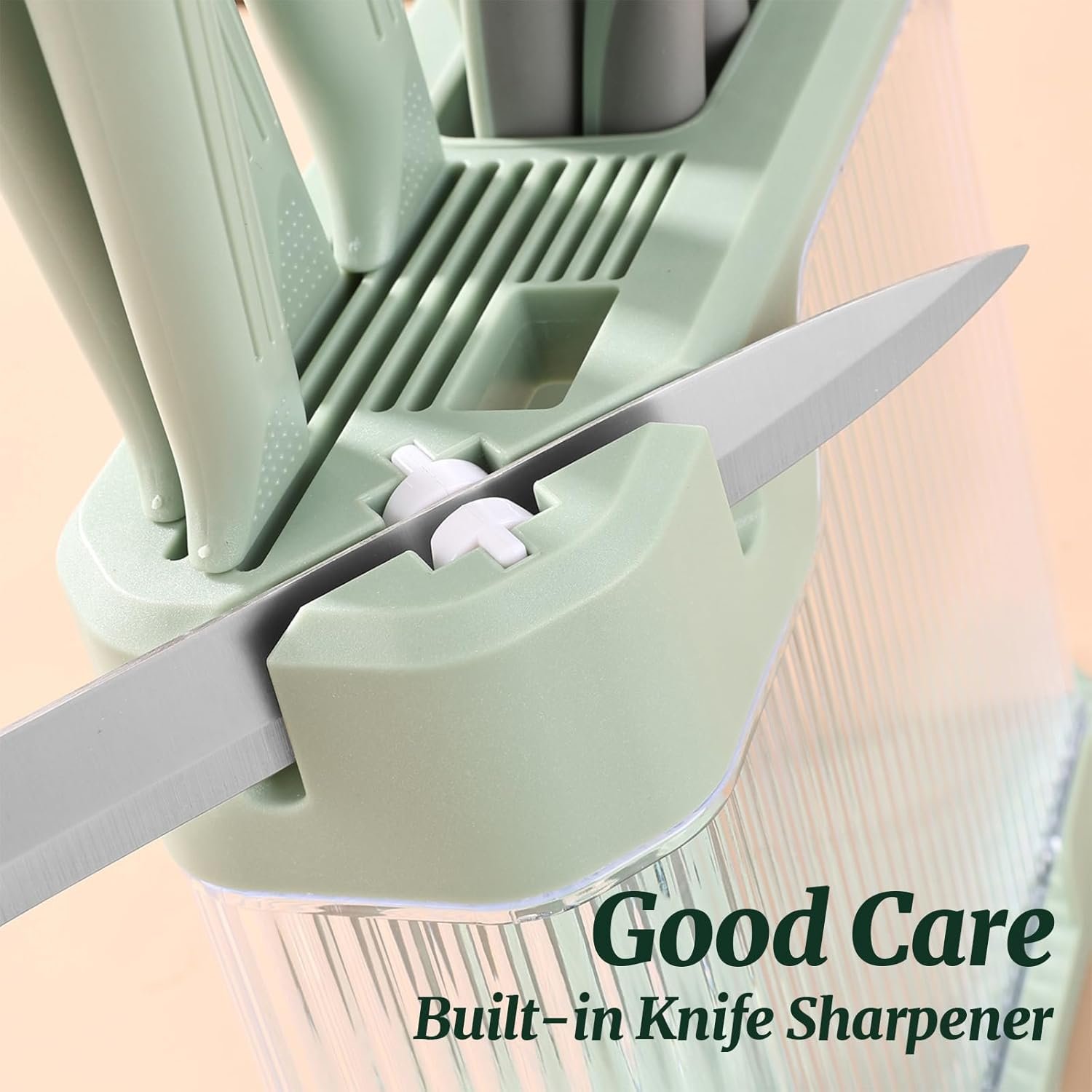 This premium kitchen knives set features high-quality stainless steel blades for precise cutting and durability. The ergonomic handles offer a comfortable, balanced grip, making meal prep effortless. Includes a built-in knife block with sharpener for easy storage and maintenance.